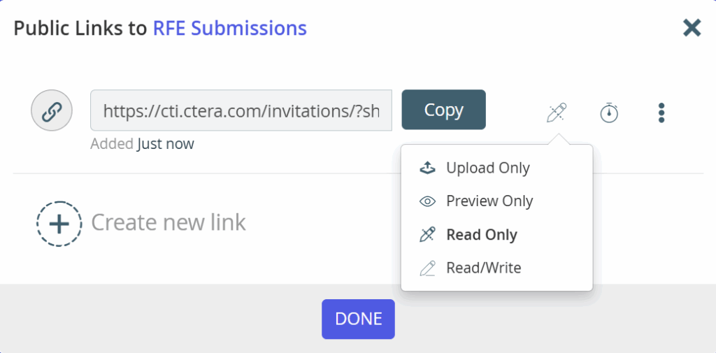 Traditional sharing links are built for collaboration. That’s great—until you need confidential intake. In tenders, RFPs, healthcare imaging, and internal HR or finance requests, “shared visibility” is a liability. Upload-only links solve that by enforcing one-way submission and isolating each uploader’s contribution. To address these needs, we are introducing essential Upload-Only capability for our Public Links and Folder and File Sharing features that’s built into the CTERA Portal.
