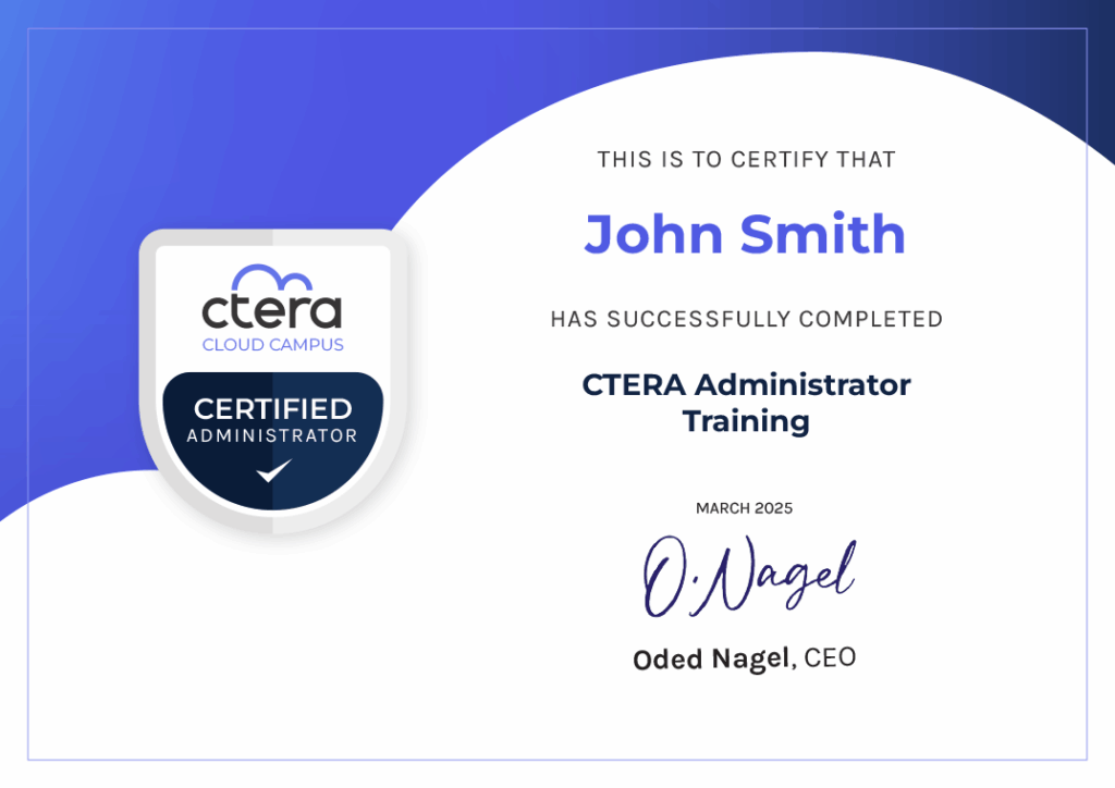 CTERA Administrator Training empowers our partners and customers with the fundamental skills required to get started with and manage CTERA at the most fundamental level.