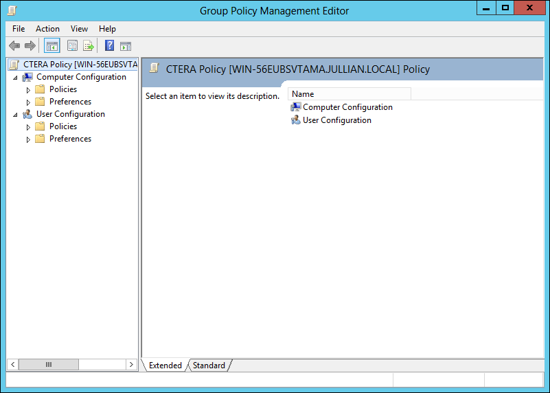 8 In the navigation pane, expand Computer Configuration > Policies > Administrative Templates > Classic Administrative Templates and click the CTERA Agent Settings node.