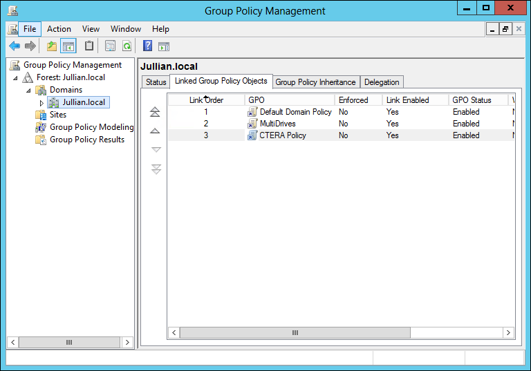 d In the navigation pane, select the domain and in the right pane, select the Linked Group Policy Objects tab.