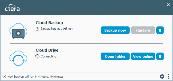 Click the gear icon in the bottom right corner of the CTERA Agent window.