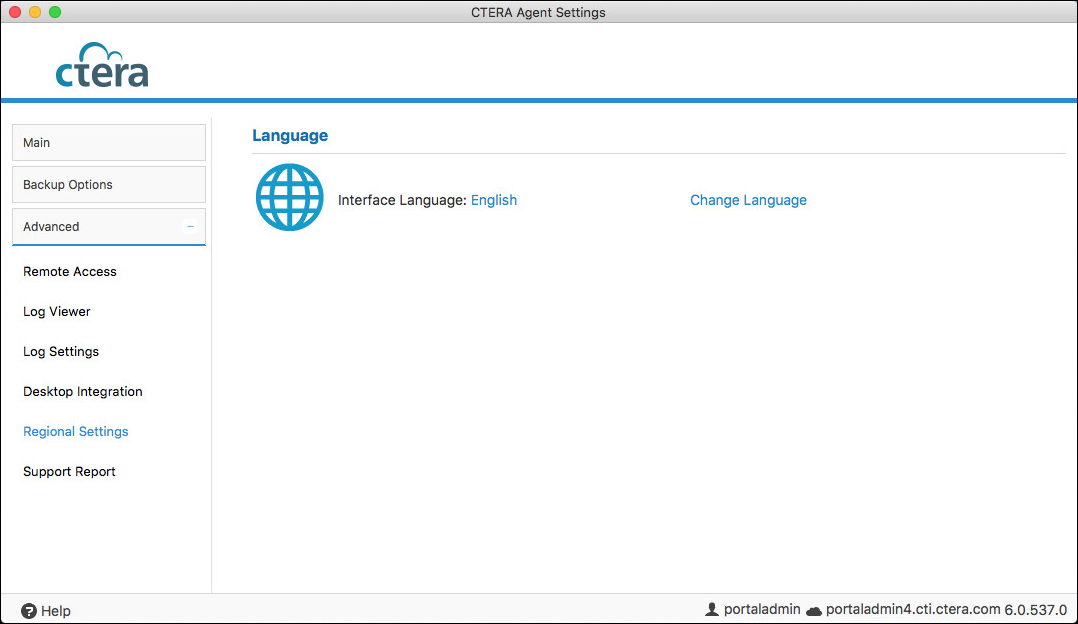 You can configure a supported language to be displayed in the CTERA Agent's interface.