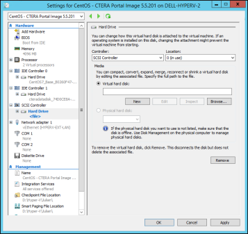 2 Attach a VHDX drive to the CTERA Portal server, by doing the following: