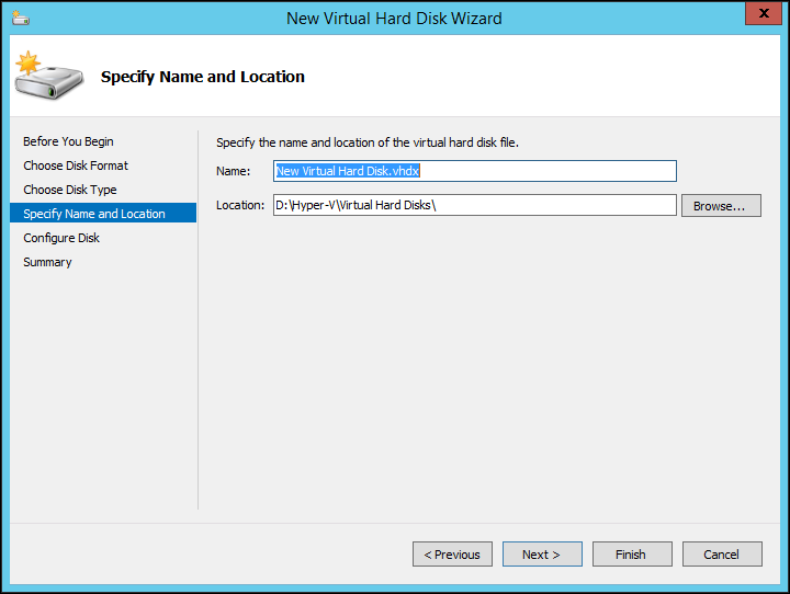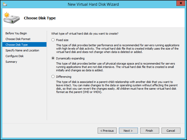 e Select the disk format you want, VHD or VHDX, and click Next.